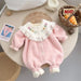 2025 Winter Infant Baby Girls Cute One-pieces Kids Ruched Embroidery Flower Thick Plush Warm Jumpsuits , Newborn Romper 0-24M