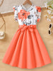 Girls Charming Floral Ruffle Dress - Delicate Neckline, Flutter Sleeves, Summer Elegant Outfit for Stylish Adventures
